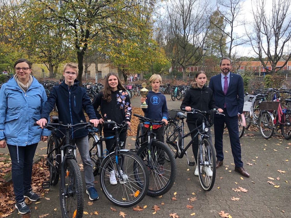 „Der von uns gestiftete Pokal ist eine kleine Auszeichnung für klimafreundliches Verhalten. Im besten Fall fördert das Stadtradeln bei den Kindern und Jugendlichen die Selbstverständlichkeit, auch künftig wenn möglich das Rad dem Auto vorzuziehen“, so Hansen. Der Pokal wurde am 2. November im Beisein des Bürgermeisters übergeben.
