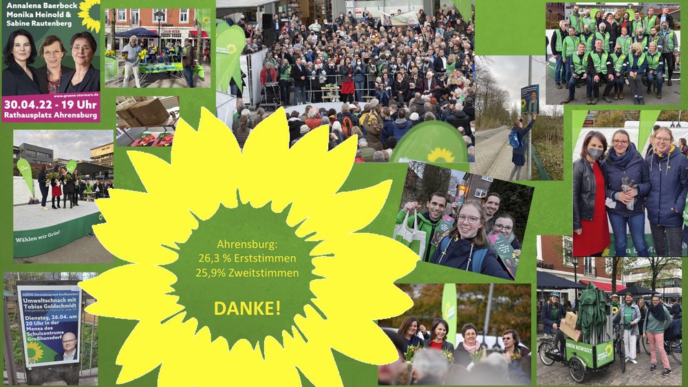 BÜNDNIS90/ DIE GRÜNEN bedanken sich für 26,3% der Erststimmen und 25,9 % der Zweitstimmen in Ahrensburg.
