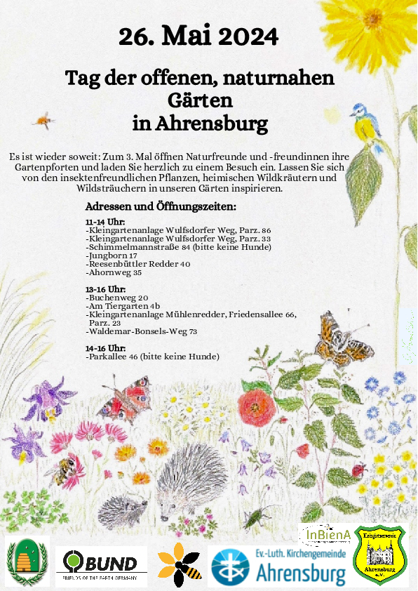 Weitere Informationen über die teilnehmenden Gärten und ein umfangreiches Begleitprogramm unter https://www.bund-stormarn.de/service/meldungen/detail/news/tag-der-naturnahen-gaerten-am-26524-in-ahrensburg/